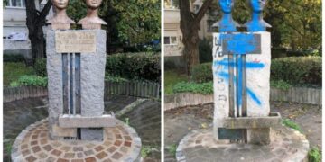 Nakon što je spomenik sestrama Baković jutros osvanuo ofarban plavom bojom, radnici JKP „Mediane“ izašli su na teren i vratili ... -