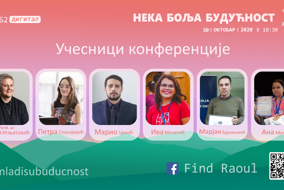 Konferencija „Neka bolja budućnost“, održava se u petak, 30. oktobra 2020. godine od 10.30 h na platformama organizacije „Nađi Raula“. Za prisustvo konferenciji nije potrebna prijava.